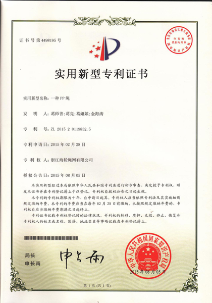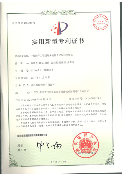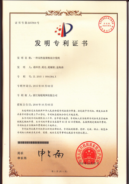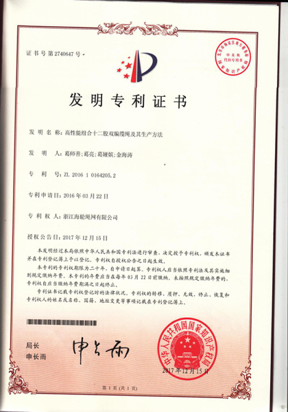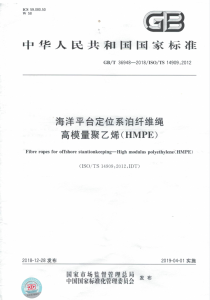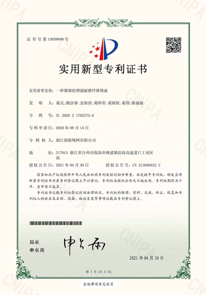 海轮是《海洋工程平台用超高分子量聚乙烯纤维绳索》《超高分子量聚乙烯纤维8股、12股绳及编织绳》等8项国家标准的主要起草单位之一。